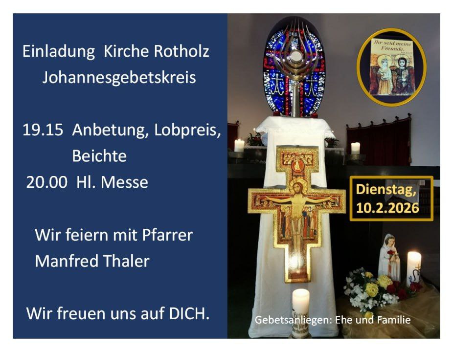 am ersten Dienstag im Monat treffen wir uns in Strass im Zillertal zum Gemeinschaftsabend: 19.00 Uhr Hl. Messe in der Pfarrkirche Strass, anschließend Gemeinschaftstreffen im Pfarrhof von Strass. Wir beschäftigen uns mit dem Thema Jüngerschaft/Nachfolge Jesu HEUTE.