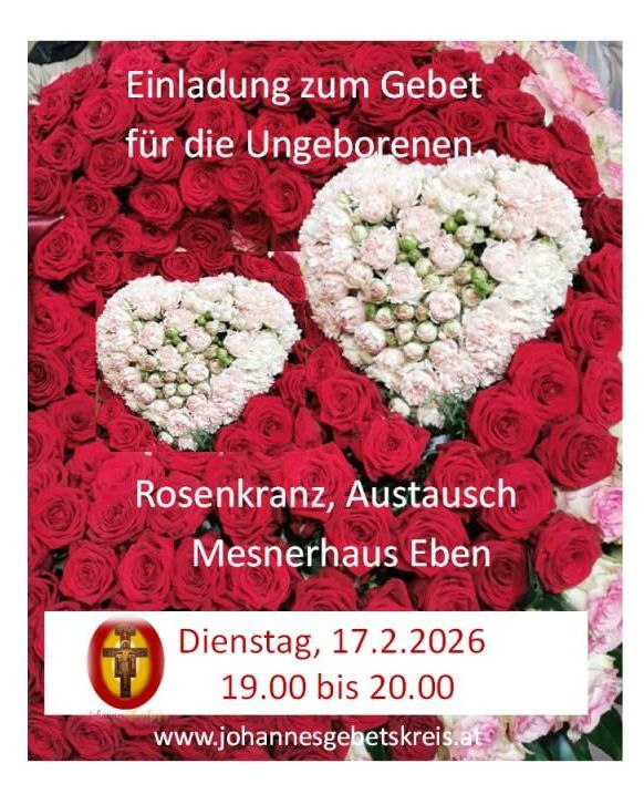 Eben am Achensee: Mesnerhaus: 19.00-20.30 Uhr "Gebet für Ungeborene"
